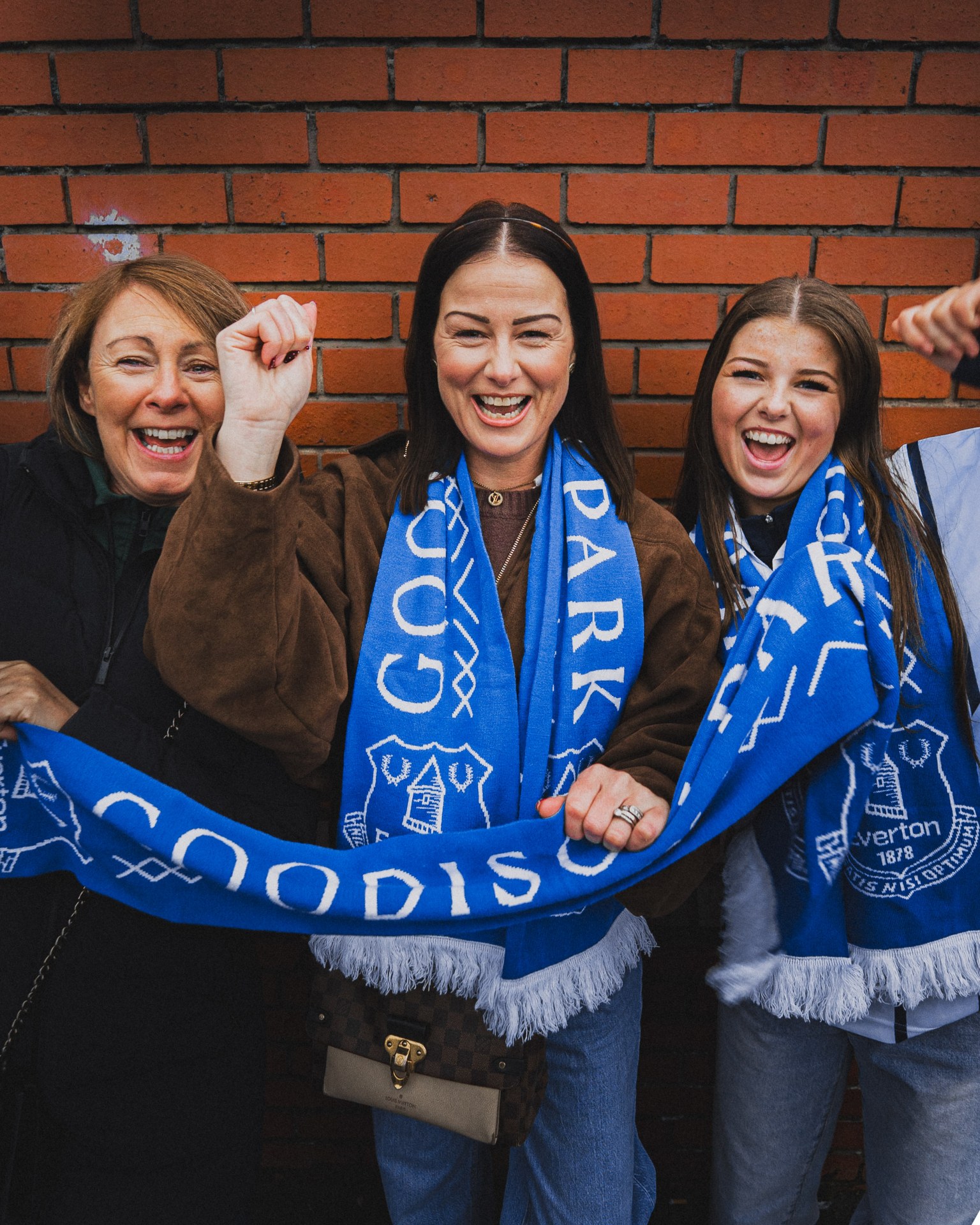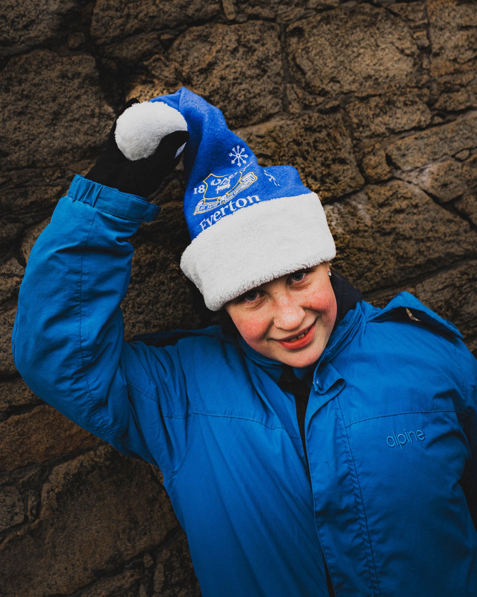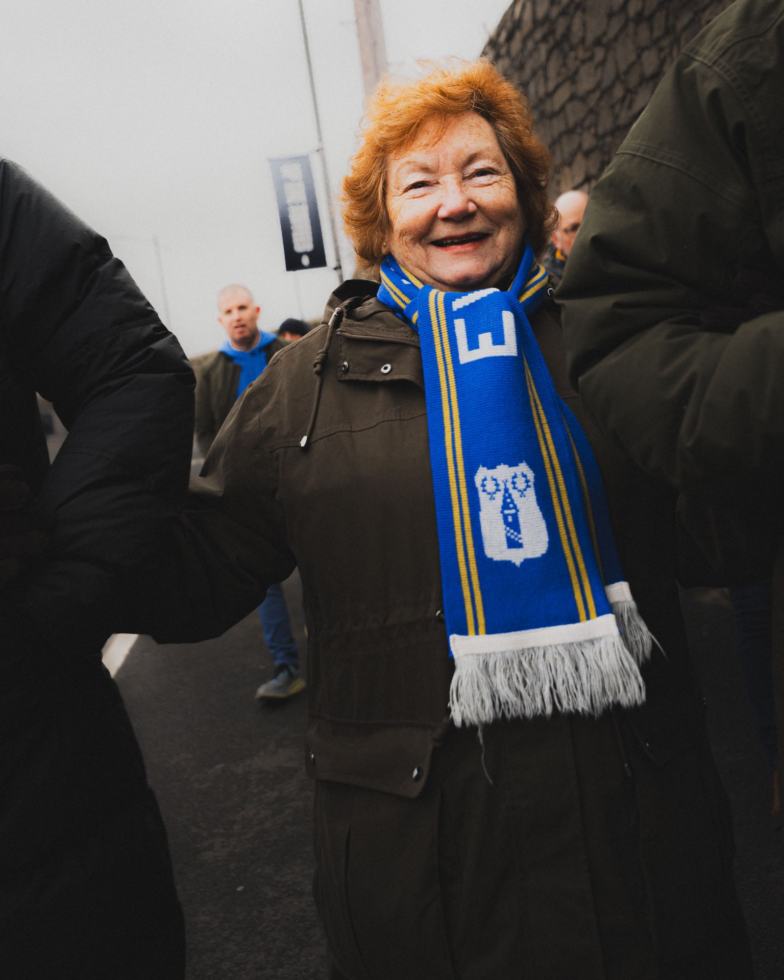 I photographed fans before the Everton v Newcastle game on a cold, rainy afternoon at Hill Dickinson Stadium – my first time shooting at the new ground! Despite the weather, the fans were full of energy as usual. One particular fan stood out to me, Pam, who caught my eye as she was dancing away in front of the DJ in The Bluehouse bar. Head to toe Everton, including her socks!
