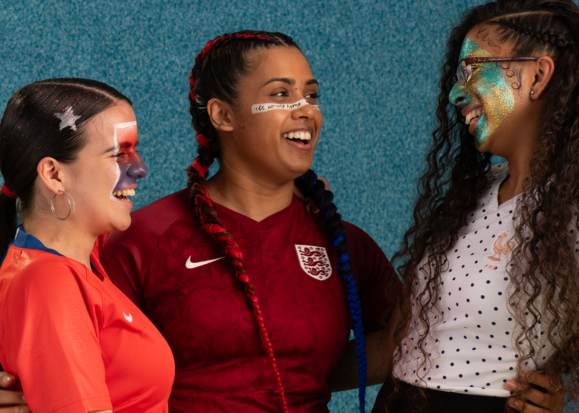 We were tasked with developing the creative for the shoot and finding fans from every nation of which Nike was a kit sponsor. We wanted a different take of traditional beauty standards, so worked with makeup artist Athena Paigton to provide the war-paint makeup looks. We worked with a stellar cast of London creatives to capture BTS and main hero campaign imagery, which was rolled out over Nike’s global platforms ahead of the competition.